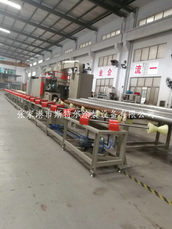 工藝面積φ273-800mm, φ273mm的排水管道使用運行速度能夠達到到120m/h,分為定頻交流電動機控制;傳送輪,采用了包膠技藝設計,有效確保不碰傷工件表面;配值過濾水式加砂口6個;