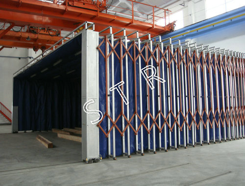 6、采用高強度(du)覆膜(mo)阻燃布(bu)作(zuo)為伸(shen)縮(suo)噴漆室密封布(bu)。