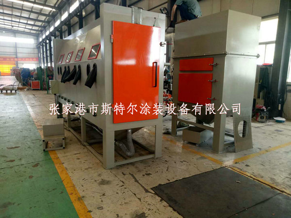噴砂機根據客人要求定制,并且雙方技術人員就設備噴砂機的性能及各項指標技術要求達成一致并且噴砂機的生產圖紙需要購買方確認后才可以生產的噴砂機設備,該噴砂機采用碳鋼板制作的噴砂機主要箱體部份,內部需要鋪設耐磨橡膠板,主要作用為砂料飛濺造成的耐磨及緩沖作用,延長噴砂機主室體的耐磨作用,噴砂機的的核心我們配備了一套高壓式噴砂機,這個高壓噴砂機的效率上比常規的虹吸式噴砂機效率要高3-5倍,并且達到無故障運行,自動加料裝置等配備齊全,在噴砂機的主要砂閥等我們采用的是我們公司自主研發的萊克砂閥,運行穩定,噴砂流暢等特點,各種電氣控制都采用品質好的元器件,主要可以充分保障噴砂機設備的運行穩定。當工件通過輸送輥道輸送到工作倉,可以實現人工噴砂加工或者通過噴砂機內部的移動支架將噴砂槍固定主要就可以實現半自動噴砂或者全自動噴砂加工,既可以手動也可以自動化操作,使用靈活等特點,主要要看使用單位需要加工噴砂的產品如果:產品的大小尺寸,產品的寬度厚度,有無折彎邊,有無死角等產品來決定噴砂機的選擇。